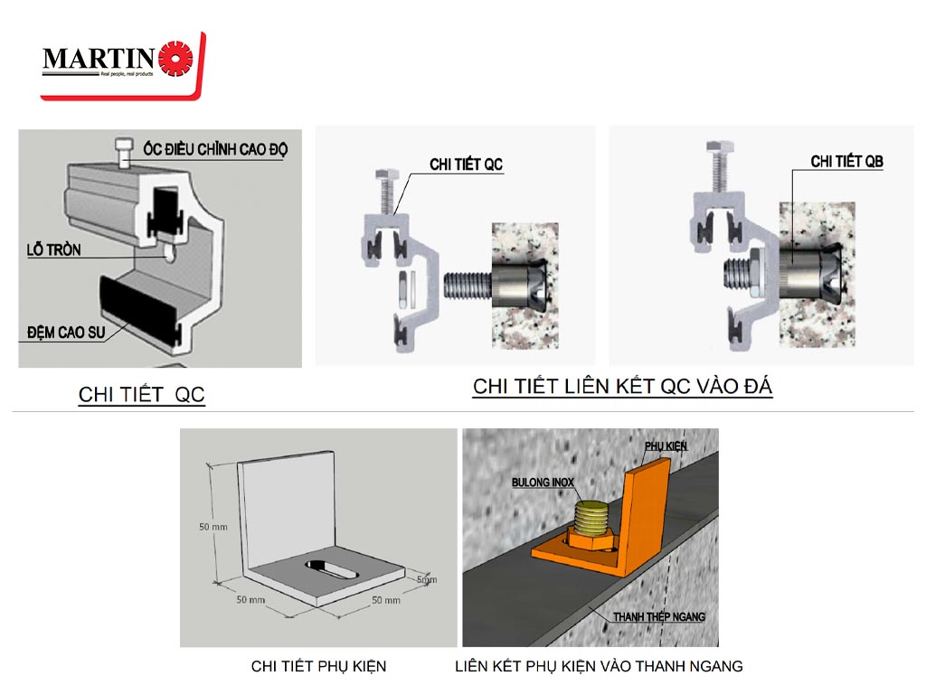 Gắn đá lên khung, cố định bằng bulông hoặc bản mã nếu yêu cầu chịu lực cao